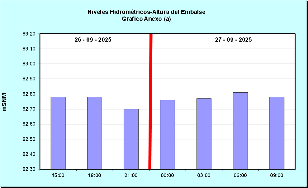 Nivel de Ayer (06:00 hs) = 82.80 mSNM Nivel de Hoy (06:00 hs) = 82.77 mSNM