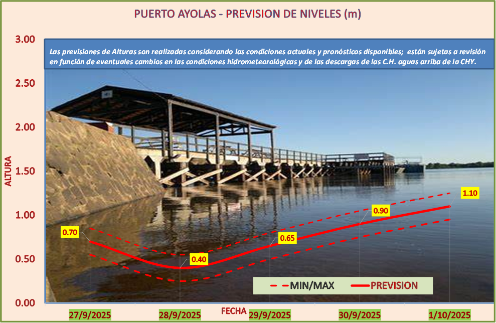 Las previsiones de Alturas son realizadas considerando las condiciones actuales y pronósticos disponibles y están sujetas a revisión en función de eventuales cambios en las condiciones hidrometeorológicas y de las descargas de las C.H. aguas arriba de la CHY.