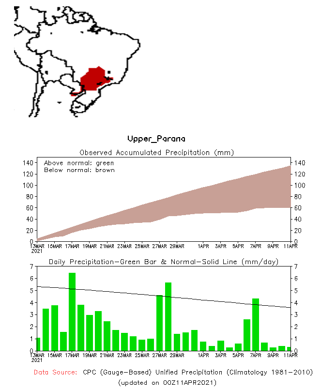 El pronóstico Hidrometeorológico del Centro Climático de referencia indica una tendencia semanal de poca significancia hidrológica en la cuenca de interés para la CHY con dispersión geográfica según sea la fuente consultada. (Ver gráfico Nro. 1).