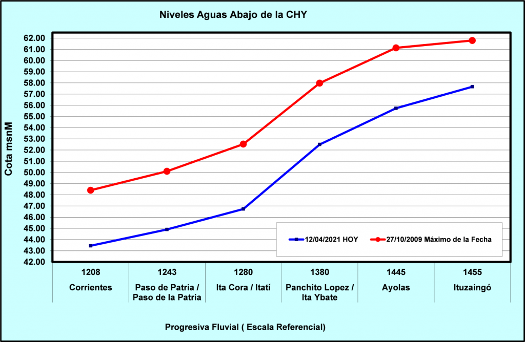 REFERENCIA: a modo de información – valores que originan riesgos de inundación en la zona de Ayolas.