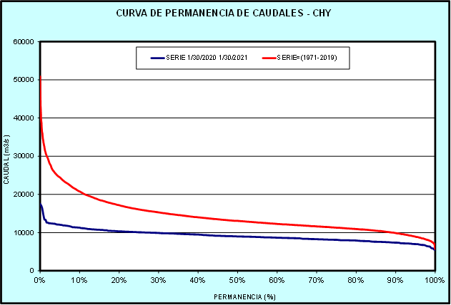 El caudal afluente a la CHY diario, pronosticado para la fecha de hoy es de 17.800 m3/s, y para el día de mañana se espera una afluencia del orden de 18.000 m3/s.