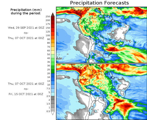 El pronóstico Hidrometeorológico del Centro Climático de referencia indica una tendencia semanal de poca significancia hidrológica en la cuenca de interés para la CHY con dispersión geográfica según sea la fuente consultada. (Ver gráfico Nro. 1).