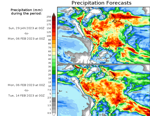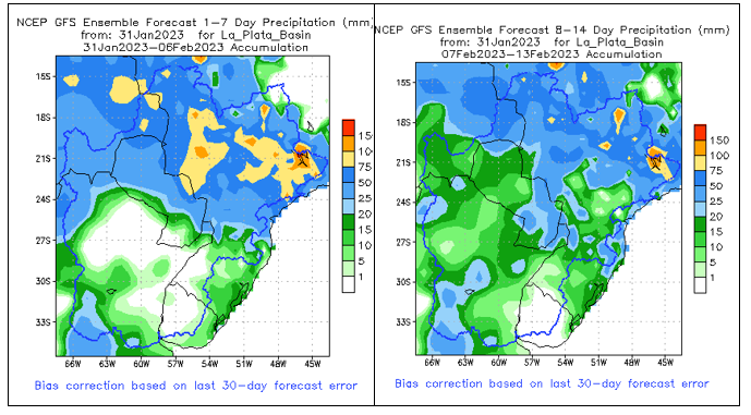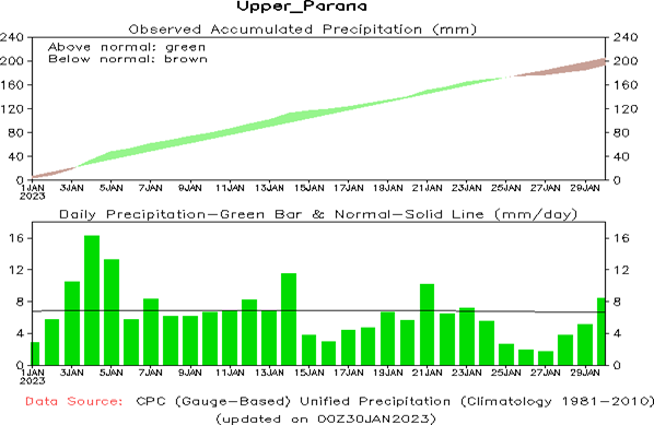 El pronóstico Hidrometeorológico del Centro Climático de referencia indica una tendencia semanal de leve significancia hidrológica en la cuenca de interés para la CHY con dispersión geográfica según sea la fuente consultada. (Ver gráfico Nro. 1).