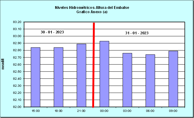 Nivel de Ayer (06:00 hs) = 82.85 mSNM Nivel de Hoy (06:00 hs) = 82.78 mSNM