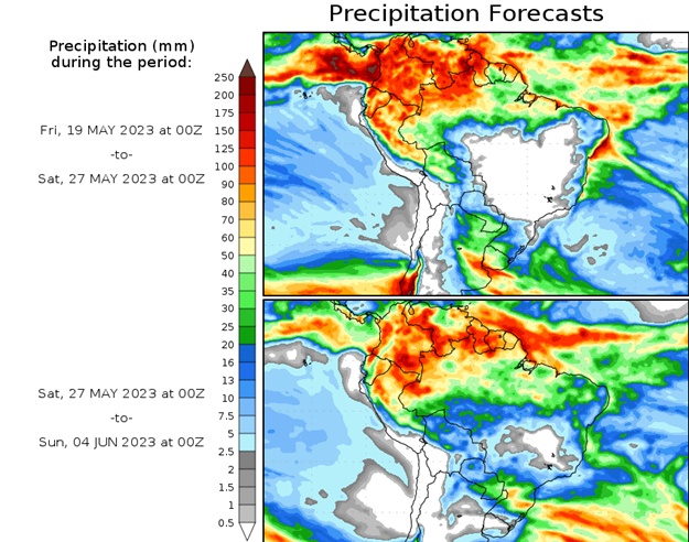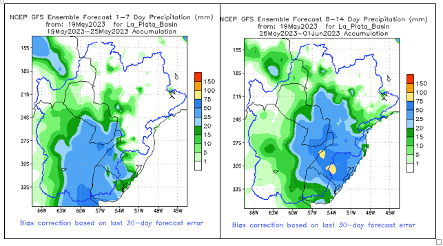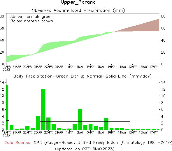 El pronóstico Hidrometeorológico del Centro Climático de referencia indica una tendencia semanal de leve significancia hidrológica en la cuenca de interés para la CHY con dispersión geográfica según sea la fuente consultada. (Ver gráfico Nro. 1).