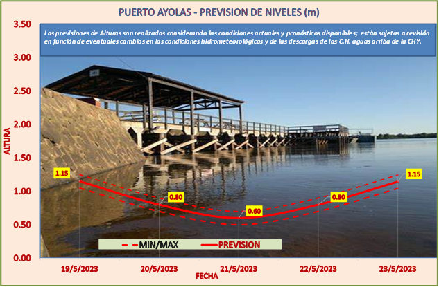 Las previsiones de Alturas son realizadas considerando las condiciones actuales y pronósticos disponibles y están sujetas a revisión en función de eventuales cambios en las condiciones hidrometeorológicas y de las descargas de las C.H. aguas arriba de la CHY.