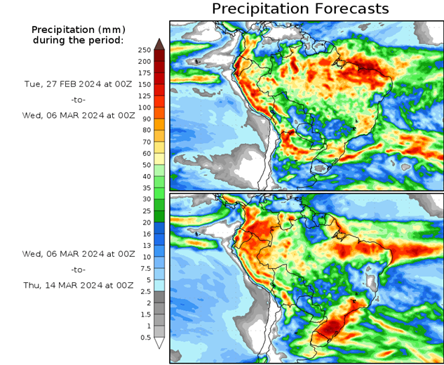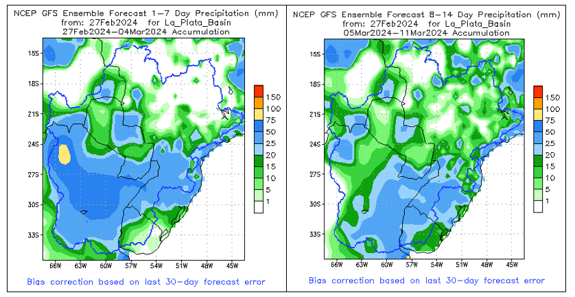 El pronóstico Hidrometeorológico del Centro Climático de referencia indica una tendencia semanal de poca significancia hidrológica en la cuenca de interés para la CHY con dispersión geográfica según sea la fuente consultada. (Ver gráfico Nro. 1).