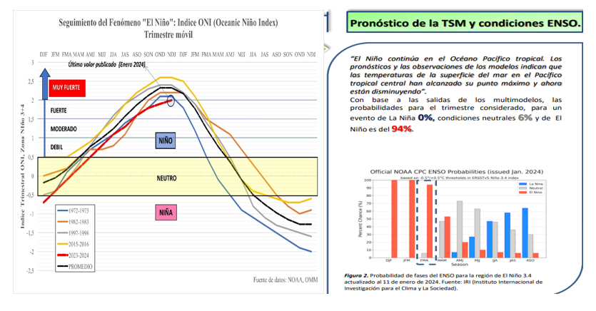 La evolución de índices climáticos publicados por organismos especializados de referencia, vinculados con la previsión del fenómeno caracterizado como “El Niño”, hace prever con un grado de probabilidad alto, que durante el periodo enero y marzo 2024 podrían verificarse eventos hidrológicos asociados a situaciones de aguas altas.