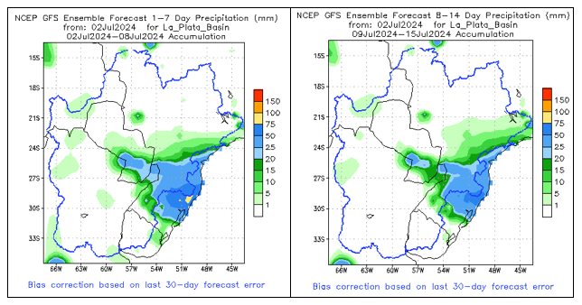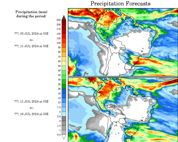 El pronóstico Hidrometeorológico del Centro Climático de referencia indica una tendencia semanal de poca significancia hidrológica en la cuenca de interés para la CHY con dispersión geográfica según sea la fuente consultada. (Ver gráfico Nro. 1).