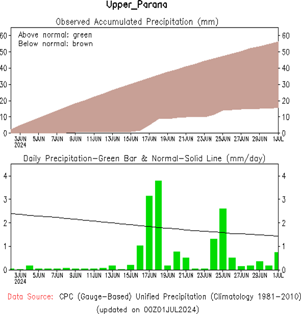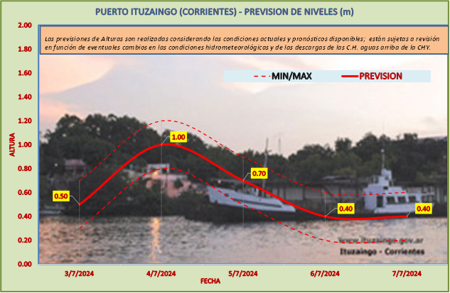 En el Puerto de Ayolas se registró una altura de 0.45 m, mientras que se espera que los niveles acompañen la tendencia de los caudales.