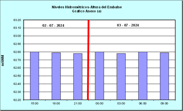 Nivel de Ayer (06:00 hs) = 82.80 mSNM Nivel de Hoy (06:00 hs) = 82.78 mSNM