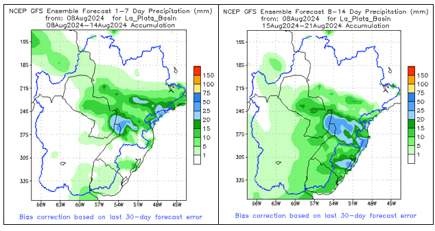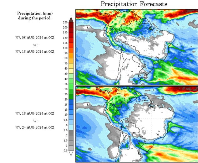 El pronóstico Hidrometeorológico del Centro Climático de referencia indica una tendencia semanal de poca significancia hidrológica en la cuenca de interés para la CHY con dispersión geográfica según sea la fuente consultada. (Ver gráfico Nro. 1).