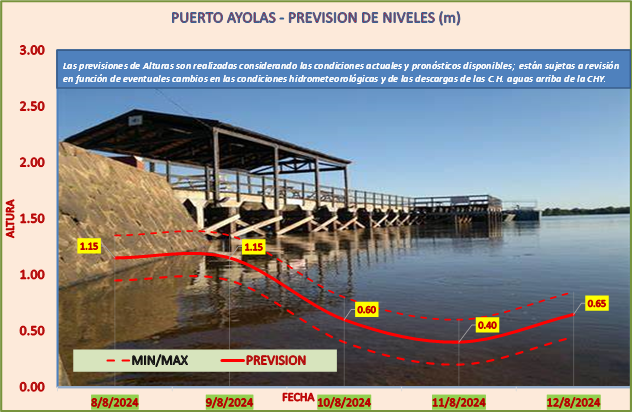 Las previsiones de Alturas son realizadas considerando las condiciones actuales y pronósticos disponibles y están sujetas a revisión en función de eventuales cambios en las condiciones hidrometeorológicas y de las descargas de las C.H. aguas arriba de la CHY.