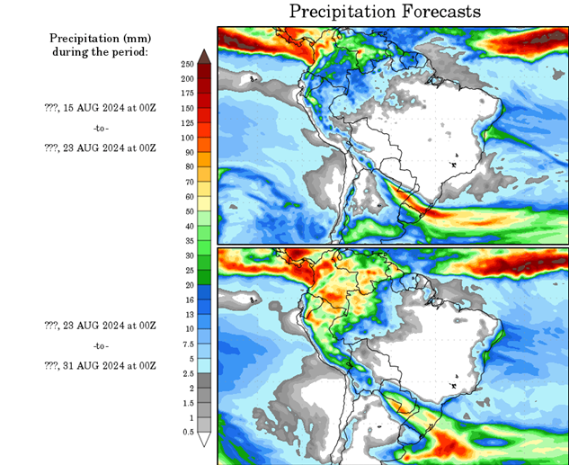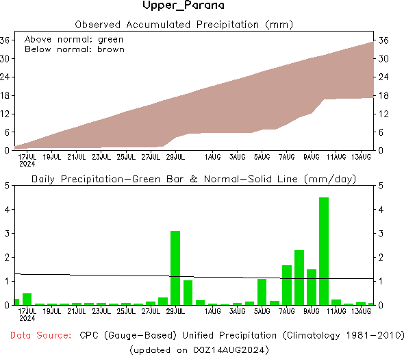 El pronóstico Hidrometeorológico del Centro Climático de referencia indica una tendencia semanal de poca significancia hidrológica en la cuenca de interés para la CHY con dispersión geográfica según sea la fuente consultada. (Ver gráfico Nro. 1).