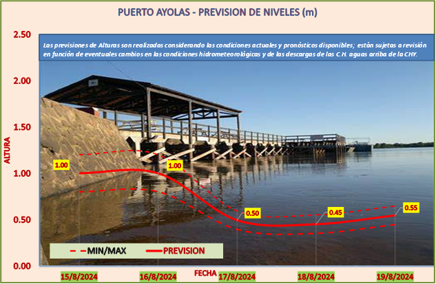 Las previsiones de Alturas son realizadas considerando las condiciones actuales y pronósticos disponibles y están sujetas a revisión en función de eventuales cambios en las condiciones hidrometeorológicas y de las descargas de las C.H. aguas arriba de la CHY.