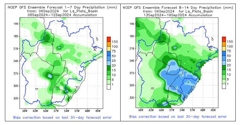 El pronóstico Hidrometeorológico del Centro Climático de referencia indica una tendencia semanal de poca significancia hidrológica en la cuenca de interés para la CHY con dispersión geográfica según sea la fuente consultada. (Ver gráfico Nro. 1).
