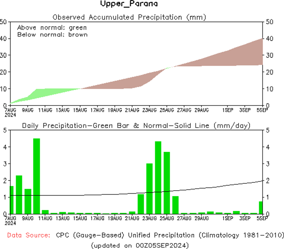 En el Puerto de Ayolas se registró una altura de 0.75 m, mientras que se espera que los niveles acompañen la tendencia de los caudales.