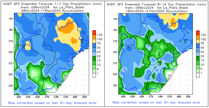 El pronóstico Hidrometeorológico del Centro Climático de referencia indica una tendencia semanal de leve significancia hidrológica en la cuenca de interés para la CHY con dispersión geográfica según sea la fuente consultada. (Ver gráfico Nro. 1).