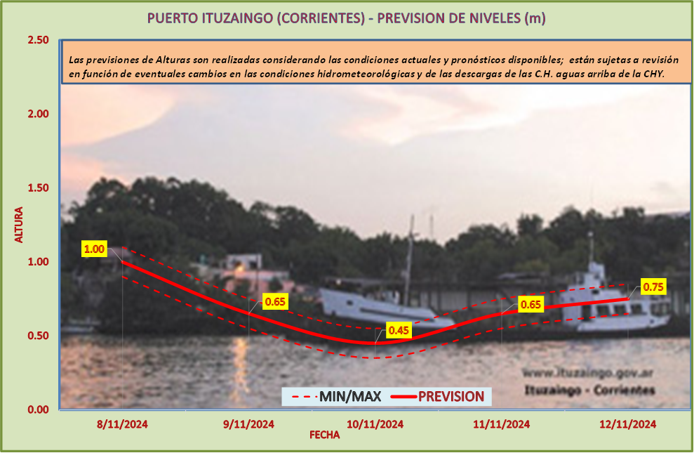 Las previsiones de Alturas son realizadas considerando las condiciones actuales y pronósticos disponibles y están sujetas a revisión en función de eventuales cambios en las condiciones hidrometeorológicas y de las descargas de las C.H. aguas arriba de la CHY.