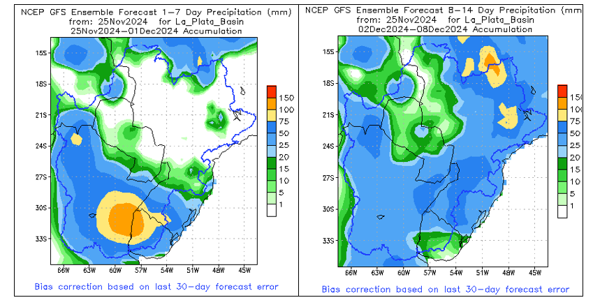 El pronóstico Hidrometeorológico del Centro Climático de referencia indica una tendencia semanal de poca significancia hidrológica en la cuenca de interés para la CHY con dispersión geográfica según sea la fuente consultada. (Ver gráfico Nro. 1).