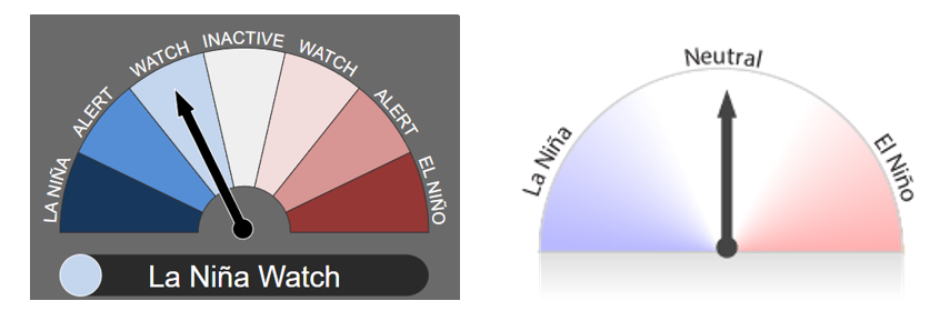 El fenómeno de El Niño-Oscilación del Sur (ENSO) es neutro, y tanto las temperaturas superficiales del mar (TSM) en el Océano Pacífico ecuatorial central como los patrones atmosféricos se encuentran en niveles neutros respecto de El Niño. Los índices atmosféricos, como los relacionados con los patrones de presión superficial, nubes y vientos alisios, son en general consistentes con un estado neutro respecto de El Niño. Aunque algunos han mostrado señales similares a las de La Niña durante las últimas semanas, estas señales no han sido consistentes.