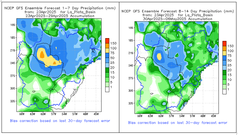 El pronóstico Hidrometeorológico del Centro Climático de referencia indica una tendencia semanal de poca significancia hidrológica en la cuenca de interés para la CHY con dispersión geográfica según sea la fuente consultada. (Ver gráfico Nro. 1).