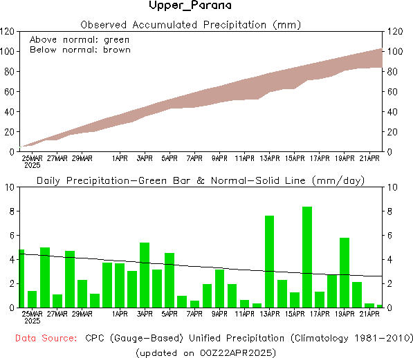 Para el trimestre considerado, se prevén valores infeiores a la normal en gran parte de la región oriental, mientras que en el resto del territorio nacional, se esperan condiciones normales.