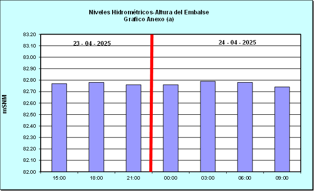 Nivel de Ayer (06:00 hs) = 82.75 mSNM Nivel de Hoy (06:00 hs) = 82.78 Msnm