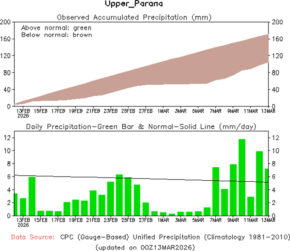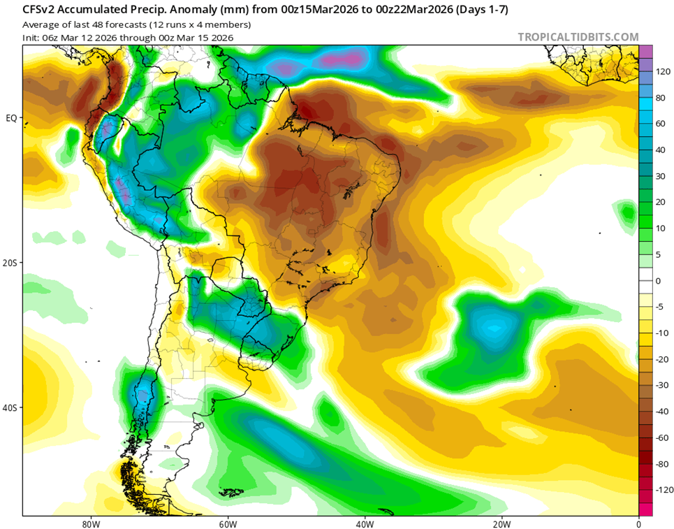 • El índice del Modo Anular del Sur (SAM, por sus siglas en inglés) se mantiene neutral al 28 de febrero de 2026. Se prevé que permanezca mayormente neutral durante las próximas dos semanas, con un breve período de SAM positivo la próxima semana.