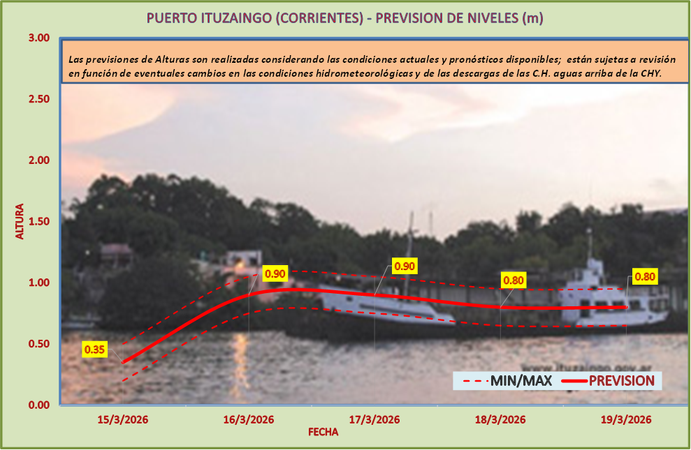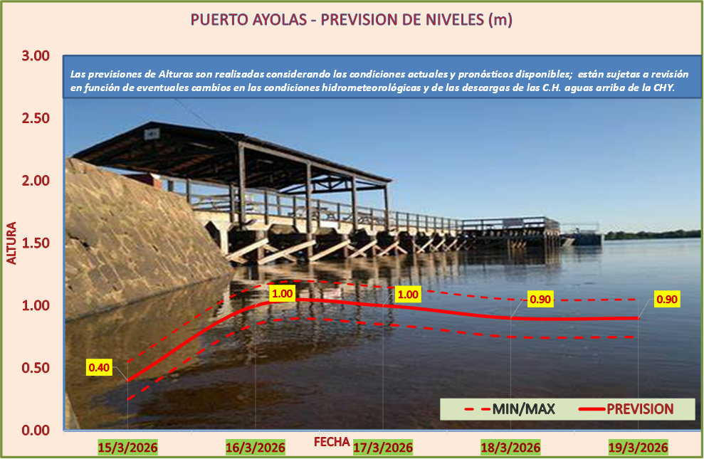 Las previsiones de Alturas son realizadas considerando las condiciones actuales y pronósticos disponibles y están sujetas a revisión en función de eventuales cambios en las condiciones hidrometeorológicas y de las descargas de las C.H. aguas arriba de la CHY.