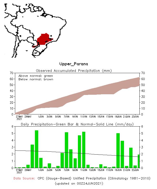 Los embalses de acumulación del Brasil que se ubican en la cuenca alta del río Paraná, aguas arriba de la Central Hidroeléctrica de Yacyretá, se encuentran con volúmenes útiles y niveles muy por debajo de lo normal debido a las escasas precipitaciones registradas.