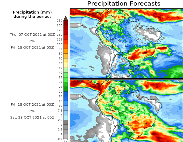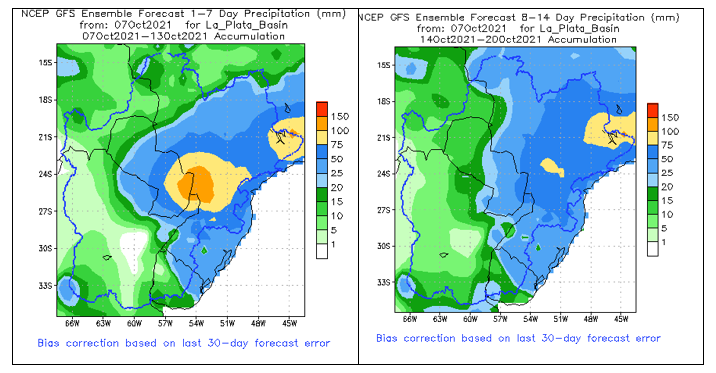 El pronóstico Hidrometeorológico del Centro Climático de referencia indica una tendencia semanal de poca significancia hidrológica en la cuenca de interés para la CHY con dispersión geográfica según sea la fuente consultada. (Ver gráfico Nro. 1).