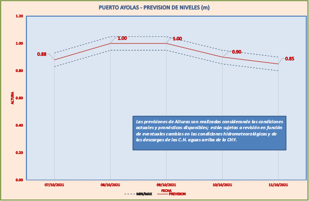 Las previsiones de Alturas son realizadas considerando las condiciones actuales y pronósticos disponibles y están sujetas a revisión en función de eventuales cambios en las condiciones hidrometeorológicas y de las descargas de las C.H. aguas arriba de la CHY.
