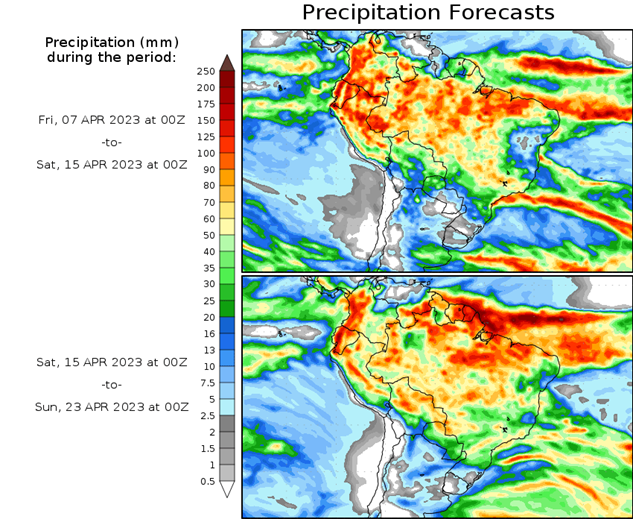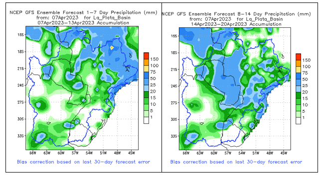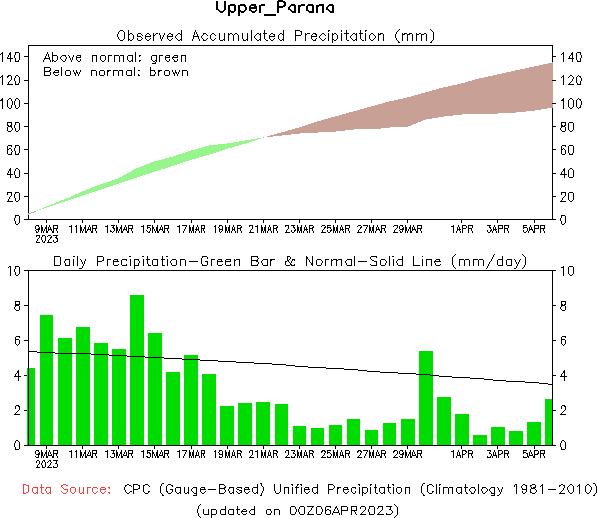 El pronóstico Hidrometeorológico del Centro Climático de referencia indica una tendencia semanal de poca significancia hidrológica en la cuenca de interés para la CHY con dispersión geográfica según sea la fuente consultada. (Ver gráfico Nro. 1).