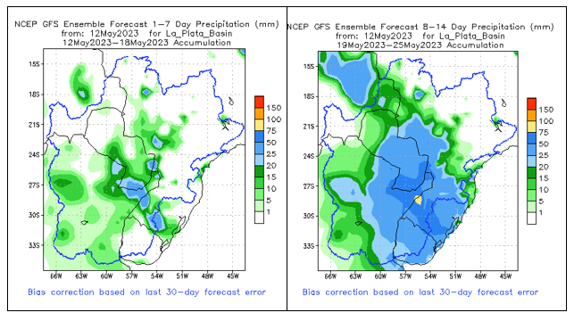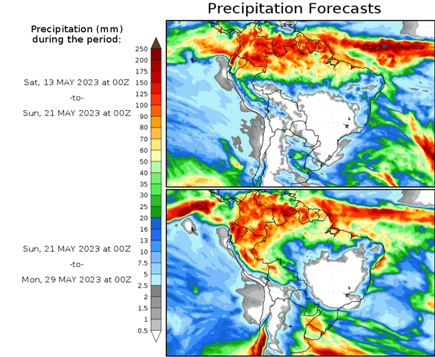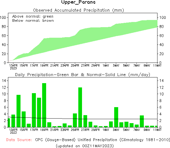 El pronóstico Hidrometeorológico del Centro Climático de referencia indica una tendencia semanal de leve significancia hidrológica en la cuenca de interés para la CHY con dispersión geográfica según sea la fuente consultada. (Ver gráfico Nro. 1).
