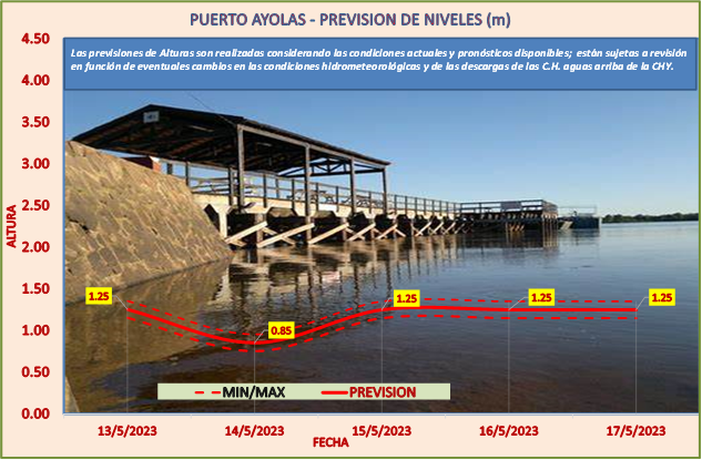 Las previsiones de Alturas son realizadas considerando las condiciones actuales y pronósticos disponibles y están sujetas a revisión en función de eventuales cambios en las condiciones hidrometeorológicas y de las descargas de las C.H. aguas arriba de la CHY.