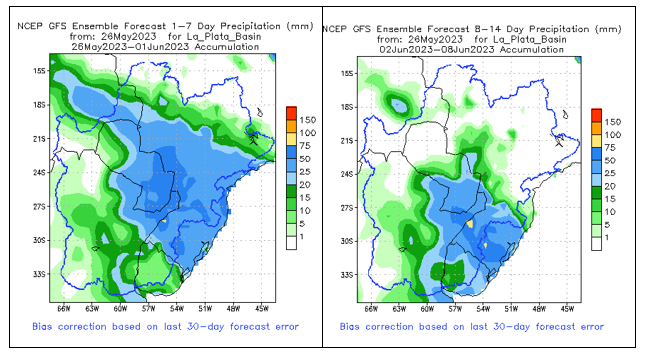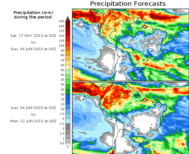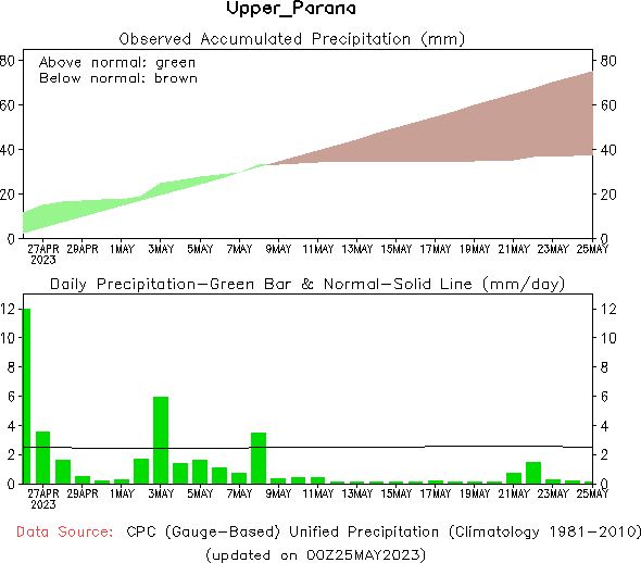 El pronóstico Hidrometeorológico del Centro Climático de referencia indica una tendencia semanal de poca significancia hidrológica en la cuenca de interés para la CHY con dispersión geográfica según sea la fuente consultada. (Ver gráfico Nro. 1).
