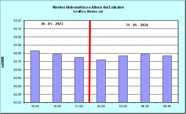 Nivel de Ayer (06:00 hs) = 82.86 mSNM Nivel de Hoy (06:00 hs) = 82.79 mSNM