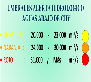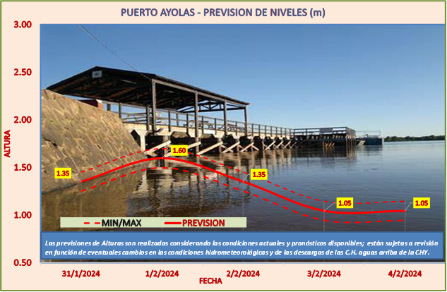 Las previsiones de Alturas son realizadas considerando las condiciones actuales y pronósticos disponibles y están sujetas a revisión en función de eventuales cambios en las condiciones hidrometeorológicas y de las descargas de las C.H. aguas arriba de la CHY.