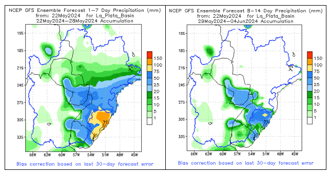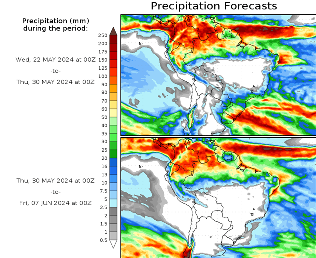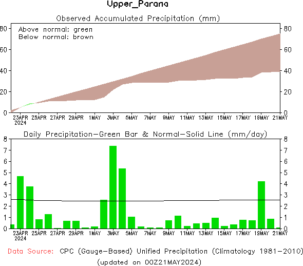 El pronóstico Hidrometeorológico del Centro Climático de referencia indica una tendencia semanal de leve significancia hidrológica en la cuenca de interés para la CHY con dispersión geográfica según sea la fuente consultada. (Ver gráfico Nro. 1).