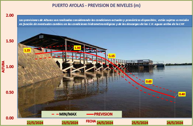Las previsiones de Alturas son realizadas considerando las condiciones actuales y pronósticos disponibles y están sujetas a revisión en función de eventuales cambios en las condiciones hidrometeorológicas y de las descargas de las C.H. aguas arriba de la CHY.