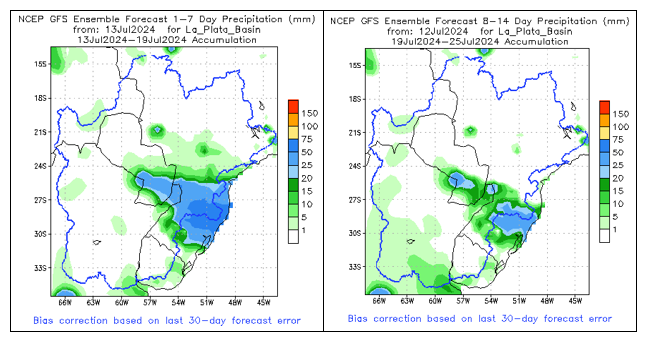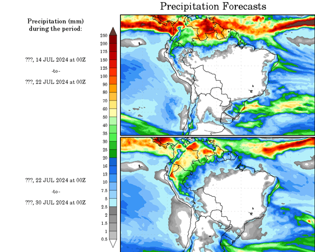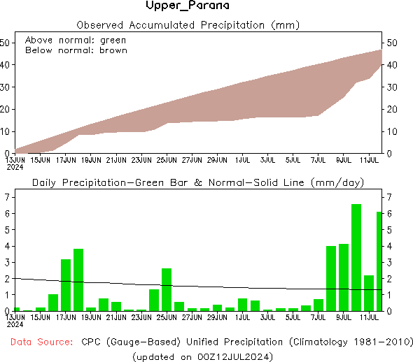 El pronóstico Hidrometeorológico del Centro Climático de referencia indica una tendencia semanal de poca significancia hidrológica en la cuenca de interés para la CHY con dispersión geográfica según sea la fuente consultada. (Ver gráfico Nro. 1).