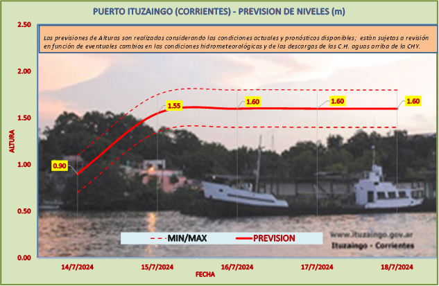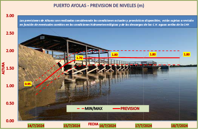 Las previsiones de Alturas son realizadas considerando las condiciones actuales y pronósticos disponibles y están sujetas a revisión en función de eventuales cambios en las condiciones hidrometeorológicas y de las descargas de las C.H. aguas arriba de la CHY.