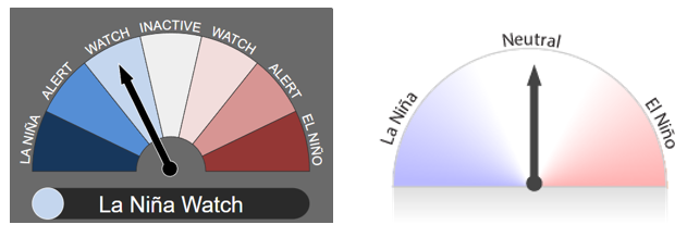 La Perspectiva ENSO se encuentra actualmente en ‘Vigilancia de La Niña’, lo que significa que hay algunas señales de que La Niña podría formarse en el Océano Pacífico más adelante en 2024. Los indicadores atmosféricos y oceánicos se encuentran actualmente dentro de los umbrales neutrales de ENSO.