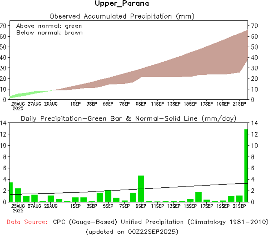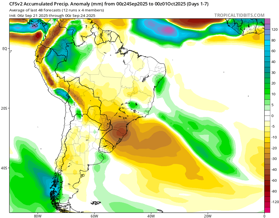 El fenómeno de El Niño-Oscilación del Sur (ENOS) se mantiene neutral. El último valor de Niño3.4 para la semana que finalizó el 24 de agosto es de -0,28 °C. Los valores neutrales de ENOS para Niño3.4 se encuentran entre -0,8 °C y +0,8 °C. Si bien las aguas subsuperficiales del Pacífico tropical han mostrado signos de enfriamiento en las últimas semanas, los indicadores atmosféricos se mantienen mayormente neutrales.