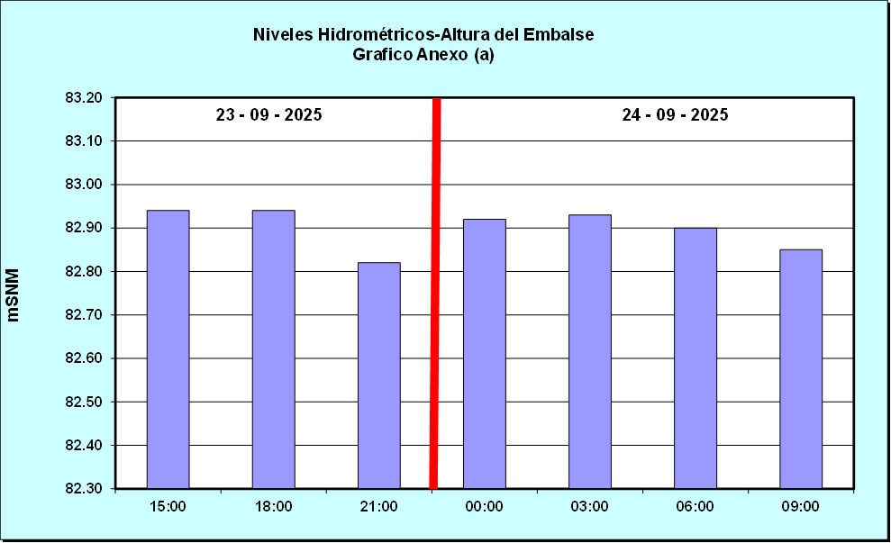 Nivel de Ayer (06:00 hs) = 82.91 mSNM Nivel de Hoy (06:00 hs) = 82.90 mSNM