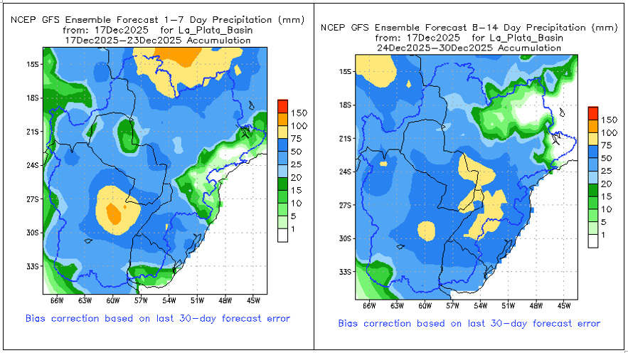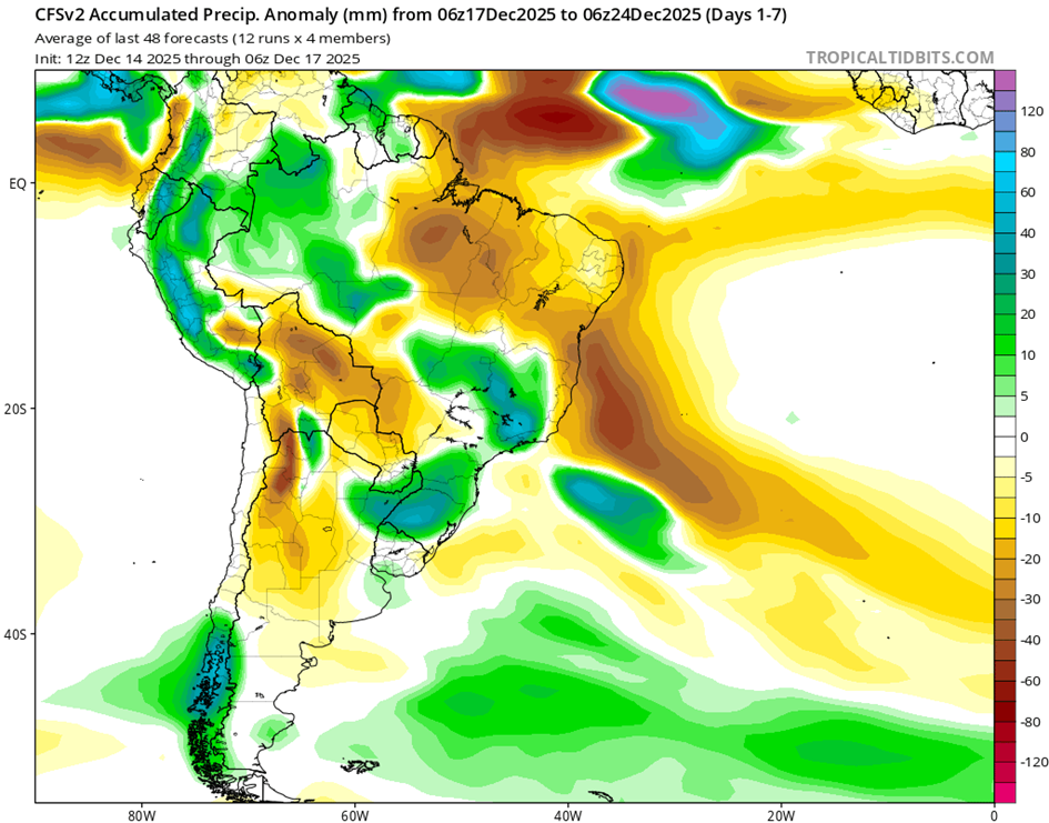 • El índice del Modo Anular del Sur (SAM) se mantiene neutral al 21 de noviembre de 2025. Se prevé que se torne negativo durante la próxima semana. Sin embargo, existe un amplio rango de posibles resultados, lo que indica una mayor incertidumbre hacia diciembre.