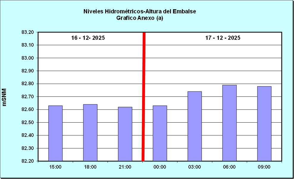 Nivel de Ayer (06:00 hs) = 82.67 mSNM Nivel de Hoy (06:00 hs) = 82.79 mSNM