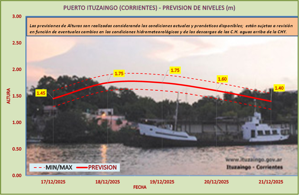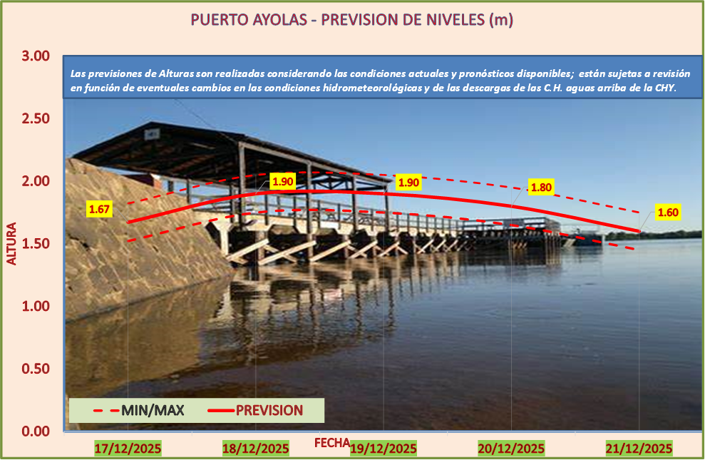 Las previsiones de Alturas son realizadas considerando las condiciones actuales y pronósticos disponibles y están sujetas a revisión en función de eventuales cambios en las condiciones hidrometeorológicas y de las descargas de las C.H. aguas arriba de la CHY.