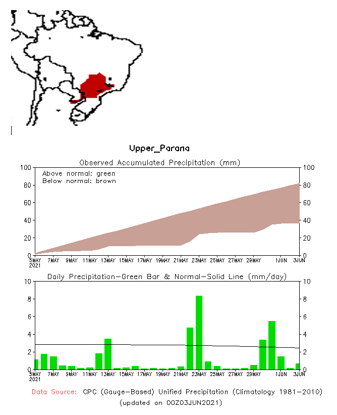El pronóstico Hidrometeorológico del Centro Climático de referencia indica una tendencia semanal de poca significancia hidrológica en la cuenca de interés para la CHY con dispersión geográfica según sea la fuente consultada. (Ver gráfico Nro. 1).